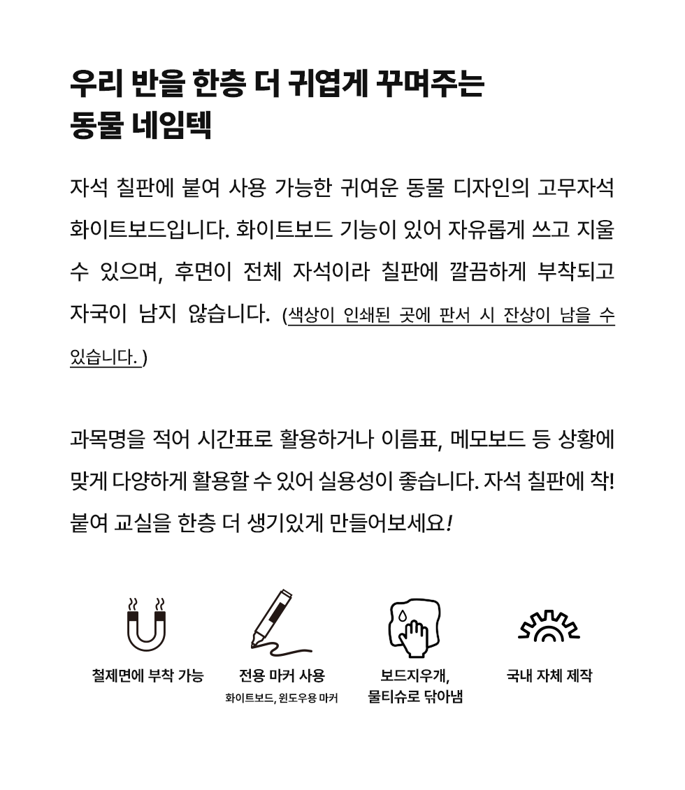 칠판 꾸미기 동물 네임텍 10종 세트 20,000원 / 배송비 : 3,300원 주문시결제(선결제)